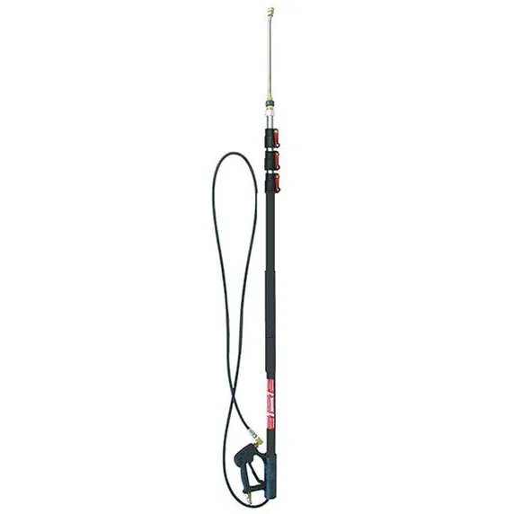 BAR carbon-fibre telescopic lance for high-reach pressure cleaning — extends through four poles to clear gutters, eaves, second-storey windows and shipping container roofs without ladder work. 4,000 PSI rated, 30 L/min flow, hot-water capable.