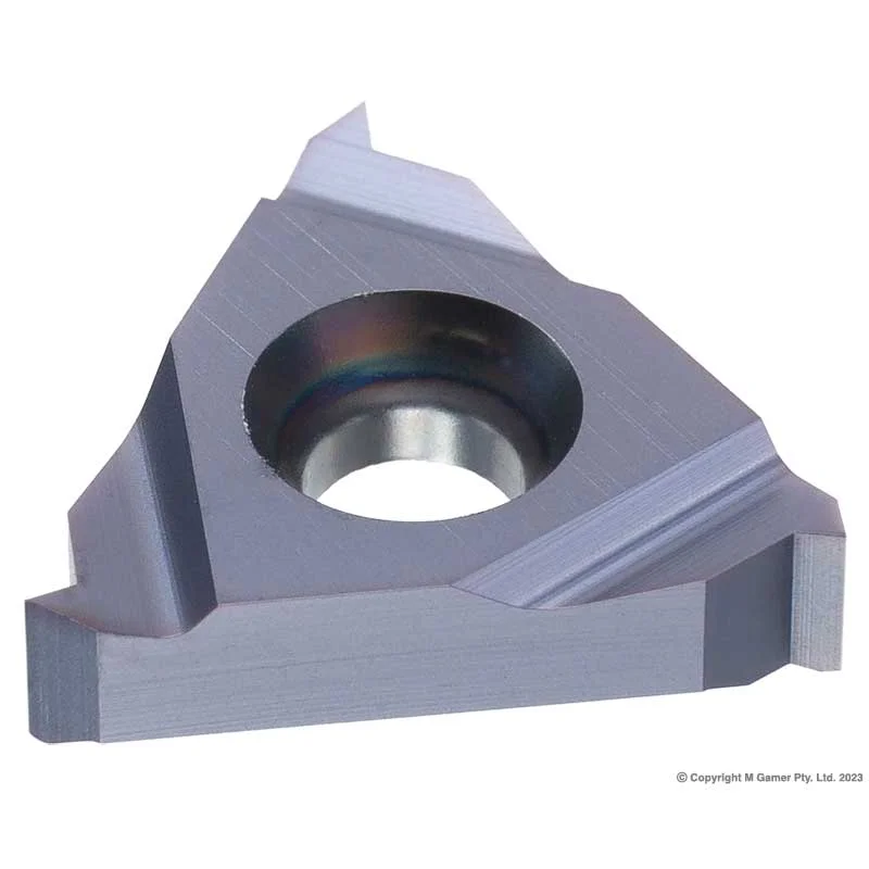 - 60° internal thread profile — Cuts standard 60° threads — UN/UNF, ISO Metric and BSP all share the same 60° angle, so one insert covers most thread types.
