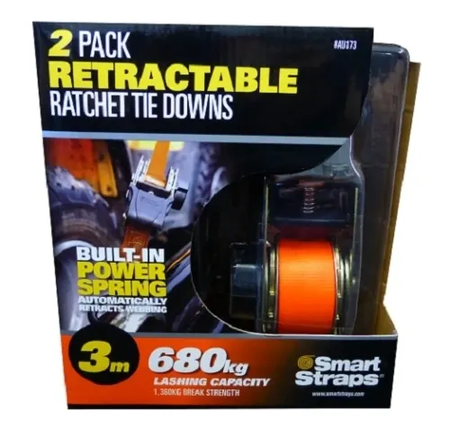Retractable Ratchet Tie Down — 3m, LC 680kg, 2 Pack