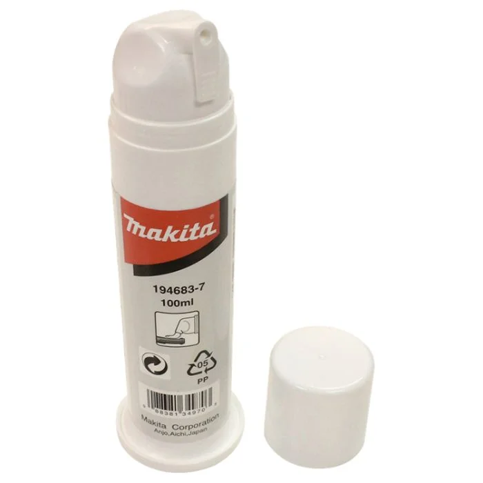 Makita 194683-7 Hammer Bit Grease 100ml pump tube. Essential SDS bit shank lubricant for rotary and demolition hammers. Reduces chuck wear and improves performance.