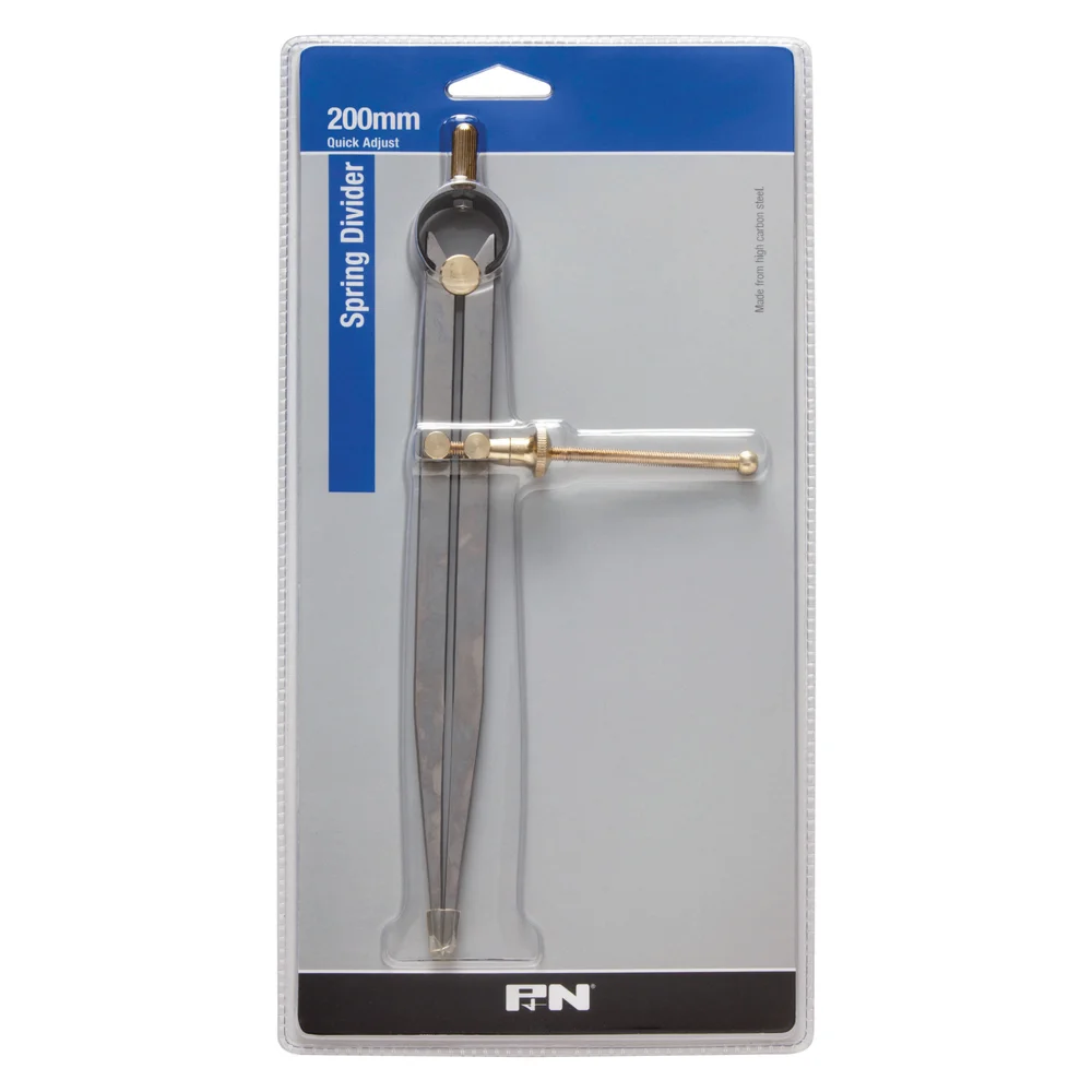 P&N’s quick-adjust spring divider gives tradespeople a precise, repeatable way to mark out arcs, transfer distances and scribe layouts on metal or timber. The carbon-steel legs and knurled adjustment screw hold a setting cleanly without slipping, and the sprung joint snaps back to the set width every time you release the legs.