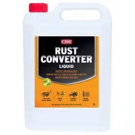 CRC Rust Converter in the 5L bulk container for large-scale rust treatment. Brush, roll or spray onto rusted steel to chemically convert rust into a paintable black surface. The most economical size for trailers, fencing and structural steelwork.