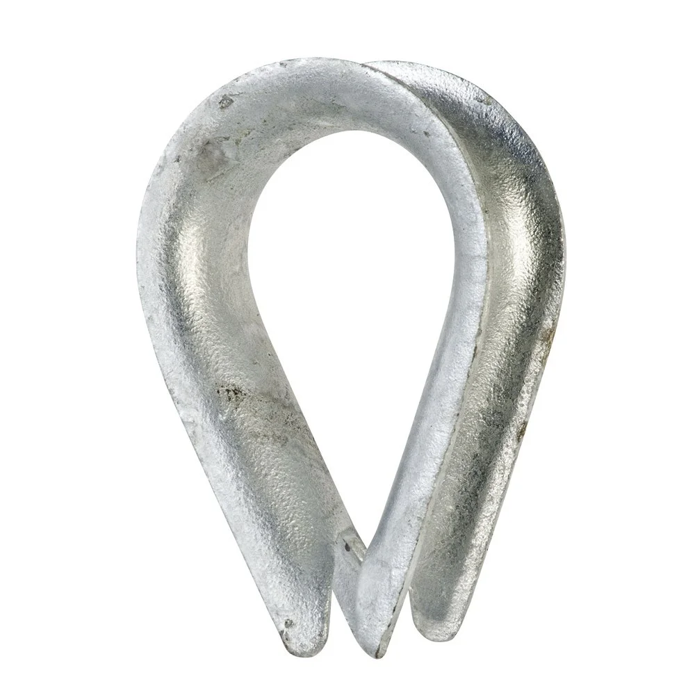 - Grooved bearing surface — guides the wire rope around a smooth curve, preventing kinking and sharp-angle stress at the loop.