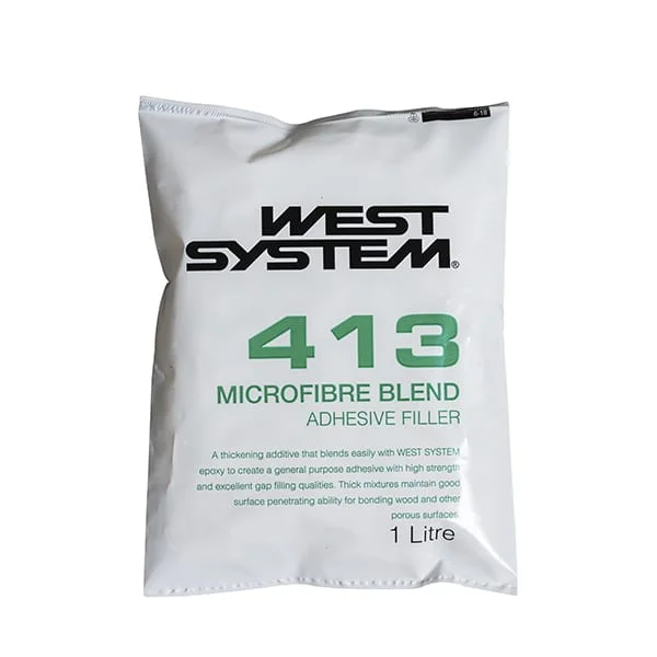 West System 413 Microfibre Blend is a high-density filler used as a thickening agent with West System epoxy to create a multi-purpose, high-strength adhesive. Ideal for structural bonding, filleting and general-purpose gap filling where maximum bond strength is required.