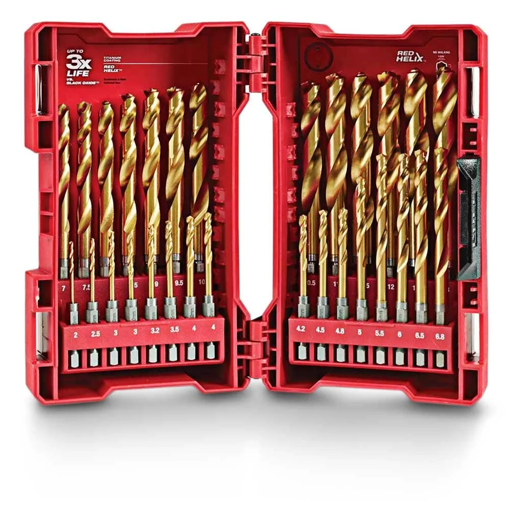 Milwaukee Shockwave Red Helix Titanium Drill Set — 29pc 1.0-13.0mm