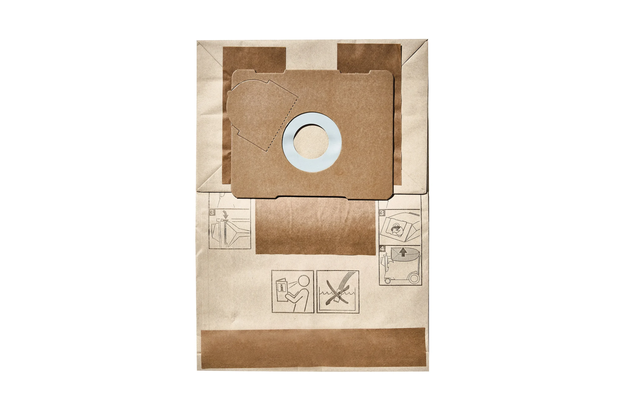 - Double-wall construction — two layers of cellulose material for improved strength and dust retention compared to single-wall bags.