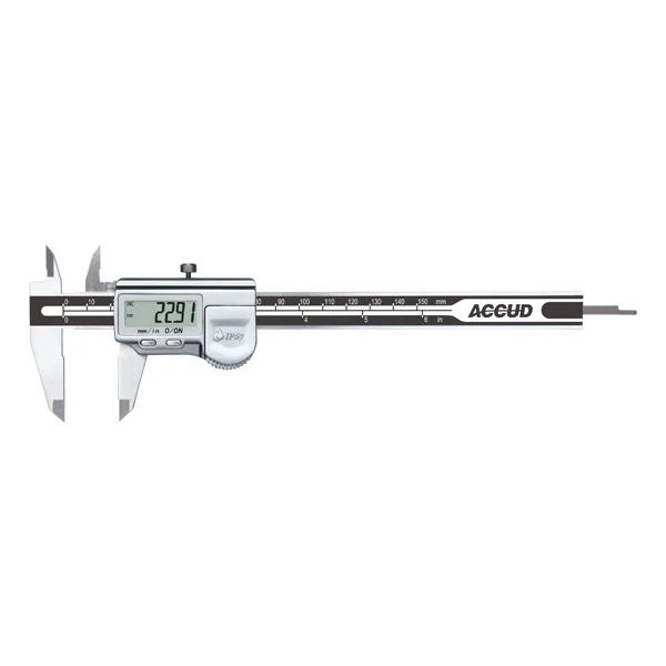 The Accud AC-112-008-12 is a fully-waterproof IP67 digital caliper covering 0–200mm at 0.01mm resolution. Submersible stainless-steel construction, dual metric/imperial display and dust-proof sealing — the digital caliper for coolant spray, oily parts and direct machine-side use without worrying about water damage.