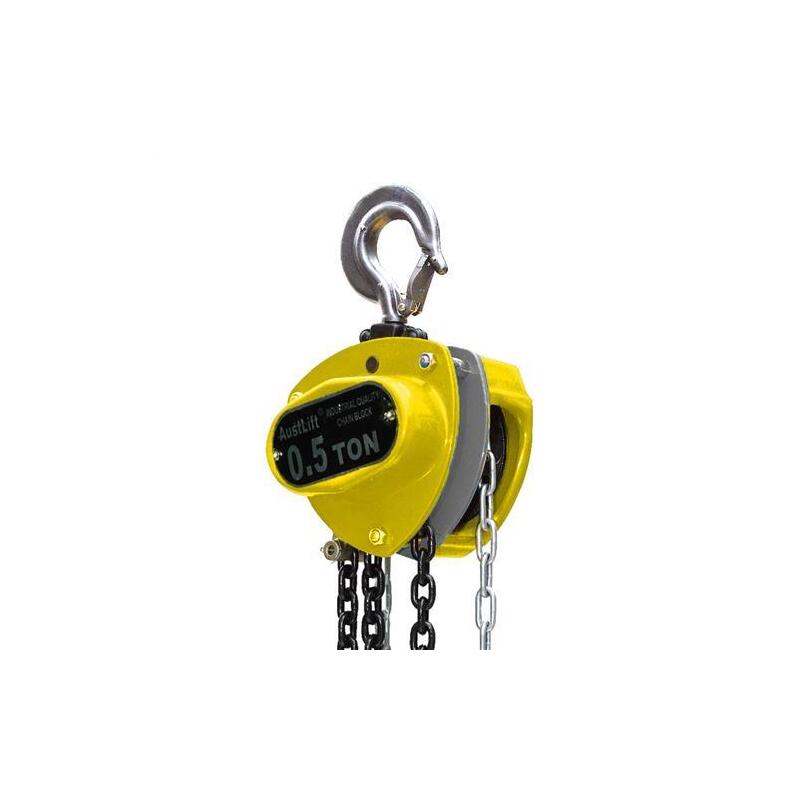 • Austlift industrial grade W4 series manually operated chain blocks are used for general hoisting operation such as mining, construction, industrial lifting and domestic applications. Other colours and height of lift available upon request. Black colour available for 110500, 1T 10M chain block.