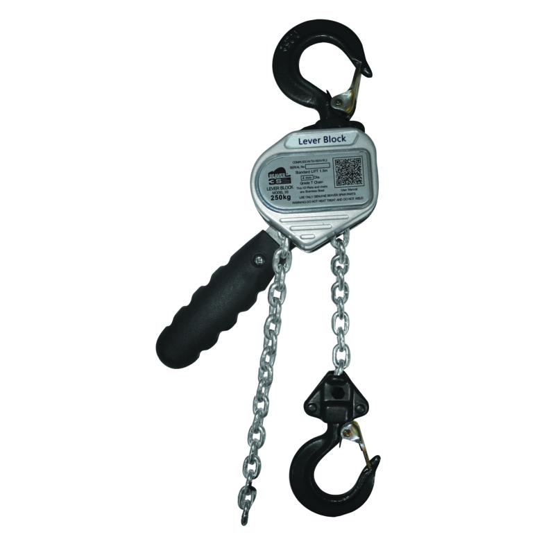 • Every Beaver 3S Industrial Lever Block is operationally tested to its rated capacity and is supplied with a Beaver test certificate, relating to its stamped identification side plate.