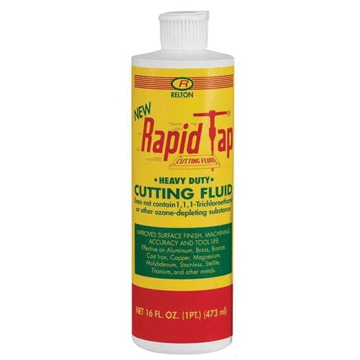 Use Relton Cutting Fluid (CFRT1PT) for general-purpose metal cutting operations. Apply directly to the cutting area when drilling, tapping, reaming or sawing steel and other ferrous metals. For aluminium-specific work, use the Relton A-9 (CFA91PT) which is formulated specifically for aluminium.