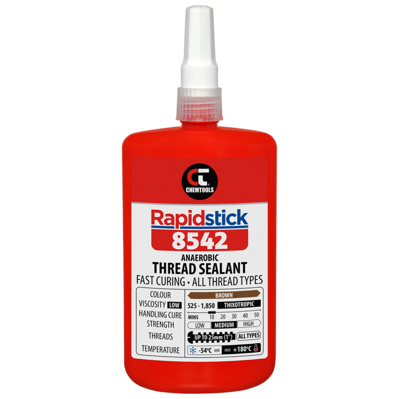 • Rapidstick™ 8542 is recommended for hydraulic and pneumatic fittings in high temperature environments, providing low pressure resistance to all thread types immediately after application.