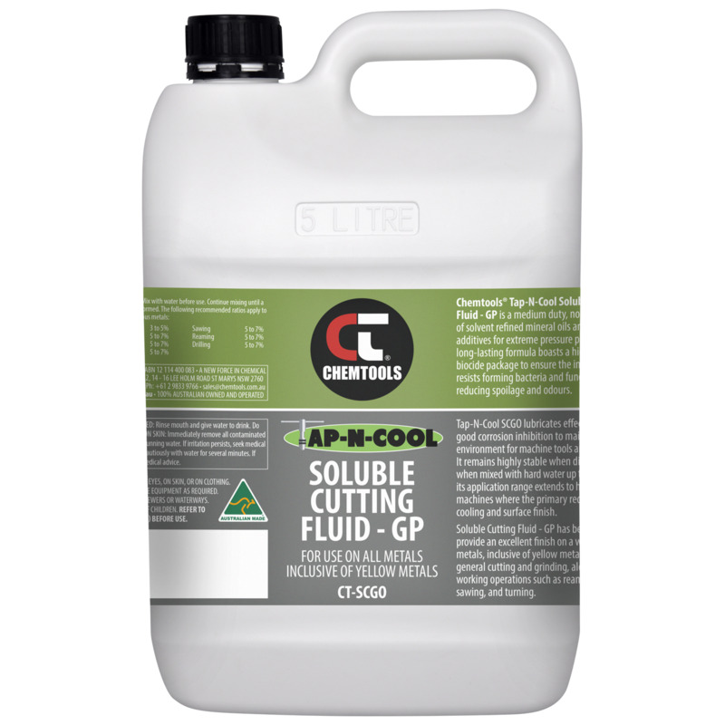 • Chemtools® Soluble Cutting Fluid (GP) is our most popular metal working fluid. It is formulated from solvent refined mineral oil & specialized additives to form a stable emulsion for general cutting and grinding.