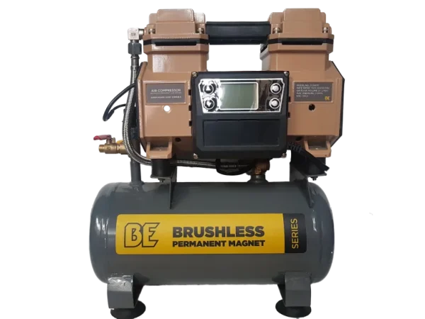 The BAR Group DC8801 is a compact brushless oil-free air compressor delivering 80 LPM of clean, dry air from a 7-litre tank. Its permanent magnet brushless motor runs quieter and cooler than conventional units, with a digital display for real-time pressure monitoring and two-speed operation for noise-sensitive environments.