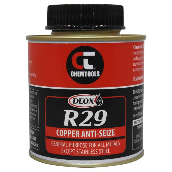 DEOX R29 is a copper-based anti-seize compound for general-purpose use on exhaust bolts, spark plugs, brake hardware and any fastener exposed to heat or corrosion.