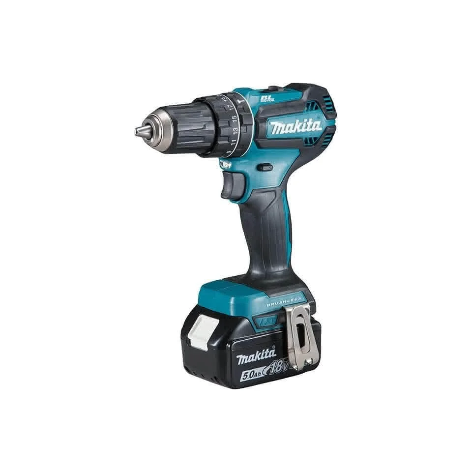 Makita’s DHP485Z is a sub-compact 18V LXT brushless hammer drill driver with 50 Nm of torque in a 182 mm body. The 21-stage clutch and 2-speed gearbox cover precision driving through to masonry drilling, with 28,500 BPM hammer action for light fixing work.