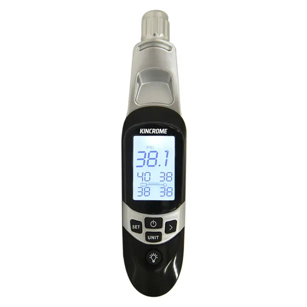 The Kincrome K8310 Digital Smart Tyre Gauge delivers accurate tyre pressure readings in PSI, BAR, and KGS across a range of 5–100 PSI. A large backlit display and built-in LED light make it easy to use day or night, while the 4-wheel memory function stores readings for all four tyres simultaneously. Suitable for cars, 4x4s, motorbikes, trailers, and caravans.