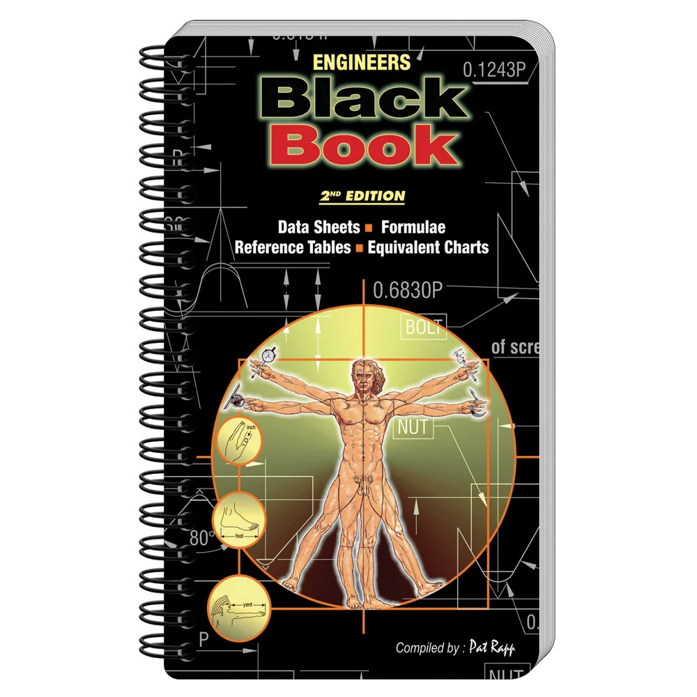 The Sutton Engineers Black Book 2nd Edition is the workshop-reference book every tradesperson, engineer and apprentice keeps within reach. Over 160 matt-laminated grease-proof pages cover the tables, standards and formulae you actually reach for — tapping drill sizes, speeds and feeds, tolerances, thread data and more — in a wire-bound format that lies flat on the bench.