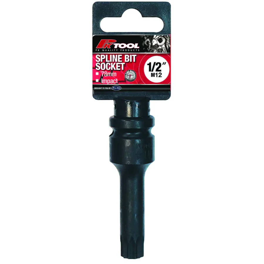PK Tool Spline Impact Socket in 12mm with 1/2″ drive. 12-spline profile for driving spline fasteners with impact wrenches and ratchets.