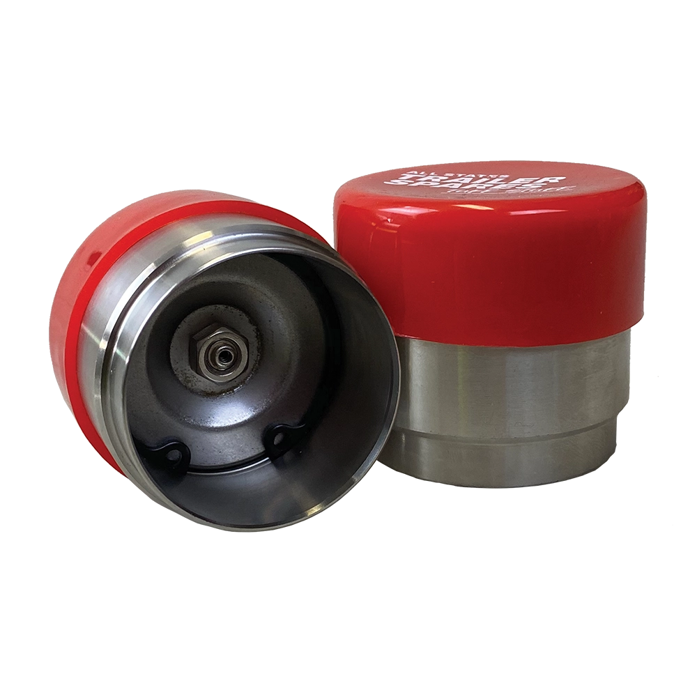 Bearing buddies are especially valuable on boat trailers where hubs are regularly submerged. When a hot hub hits cold water, the air inside contracts and can draw water past standard seals. The R1415A bearing buddy maintains positive grease pressure to prevent this. They are also convenient for any trailer where you want to top up bearing grease without pulling the hub apart. Simply replace the standard R1958 dust caps with these.