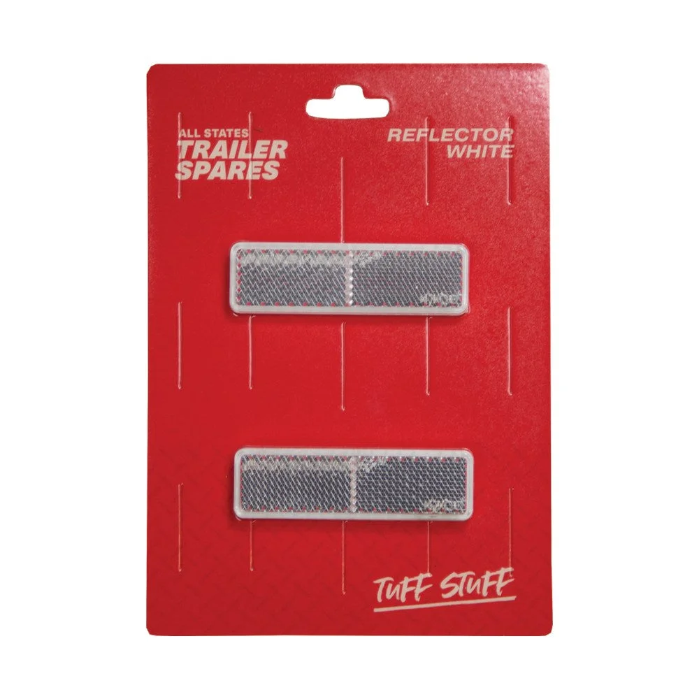 Self-adhesive white reflectors for trailers, caravans and other vehicles. Sold as a pair, these reflectors meet Australian ADR requirements for forward-facing visibility and are essential for safe towing at night and in low-light conditions.