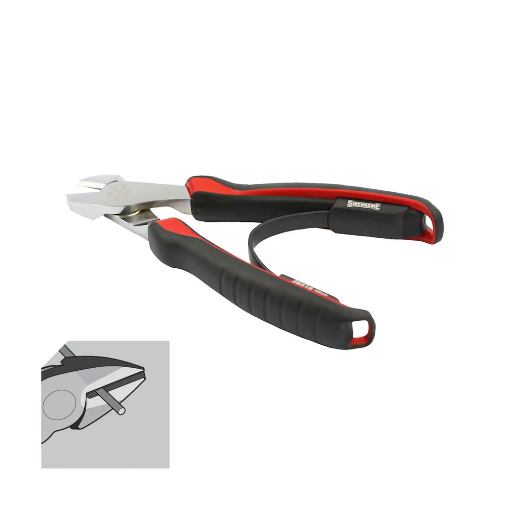 Sidchrome SCMT28516 Diagonal Cutting Pliers 180mm with Chrome-Moly-Vanadium steel edges hardened to 61-63 HRC. Offset pivot reduces cutting effort by 20%. Chemical-resistant handles tested to 1M+ cycles.