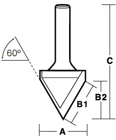 - 60° included angle — the standard angle for sign lettering and decorative V-groove work; produces crisp, sharp-edged letter forms and groove patterns.