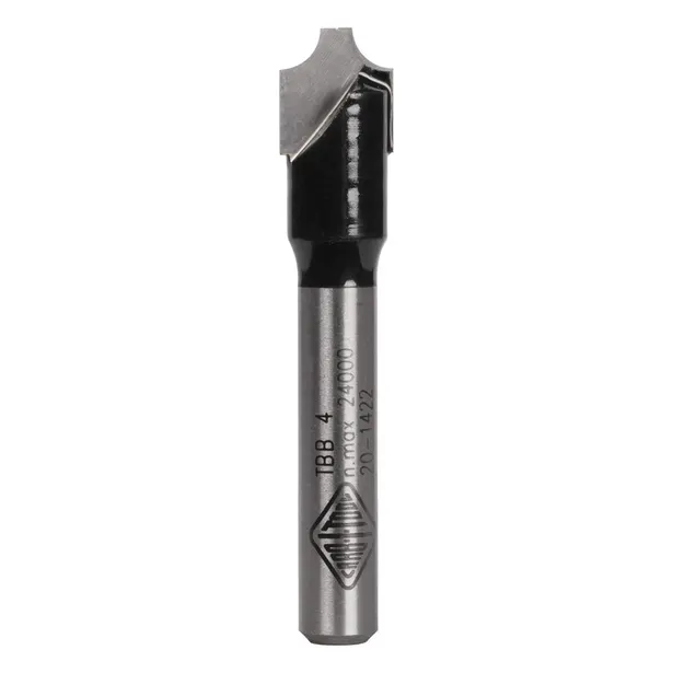 The Carbitool TBB 4 is a 2-flute carbide-tipped Beading router bit producing a compact 3.2mm radius bead profile (3/8″ cutting diameter). Ideal for grooving panel door surfaces and routing decorative bead details in cupboard doors and cabinet face work. 1/4″ shank. Use with fence or template.