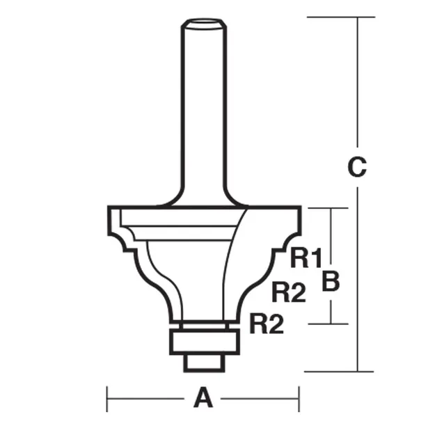 The Carbitool TBO 35 B 1/2 is a 2-flute carbide-tipped Beading Ogee router bit with ball bearing. It combines a rounded bead (R3.18mm) with an ogee curve (R7.94mm) in a single pass, producing a rich decorative edge moulding. 1-3/8″ cutting diameter, 1/2″ shank.
