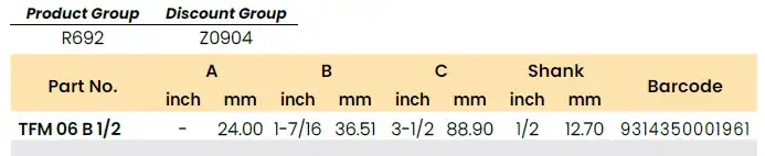 Part No: TFM 06 B 1/2 | Barcode: 9314350001961 | Product Group: R692 | Discount Group: Z0904