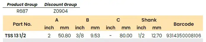 Part No: TSS 13 1/2  |  Barcode: 9314350008106  |  Product Group: R687  |  Discount Group: Z0904