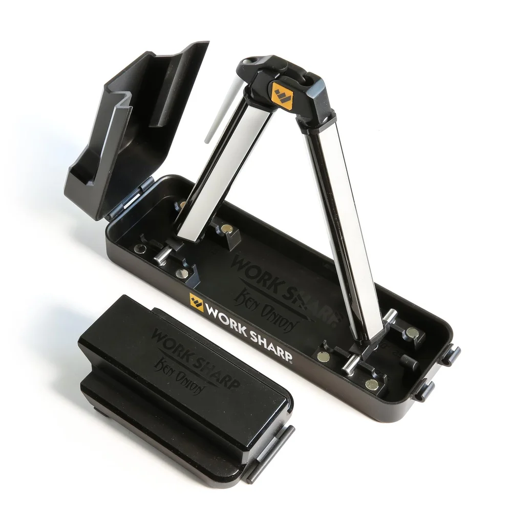 The Work Sharp WSBCHAGS-I Benchtop Angle Set is a manual knife sharpener with preset angle guides and multi-stage diamond plates. It delivers consistent, repeatable sharpening results without electricity, making it a reliable benchtop solution for kitchen and outdoor knives.